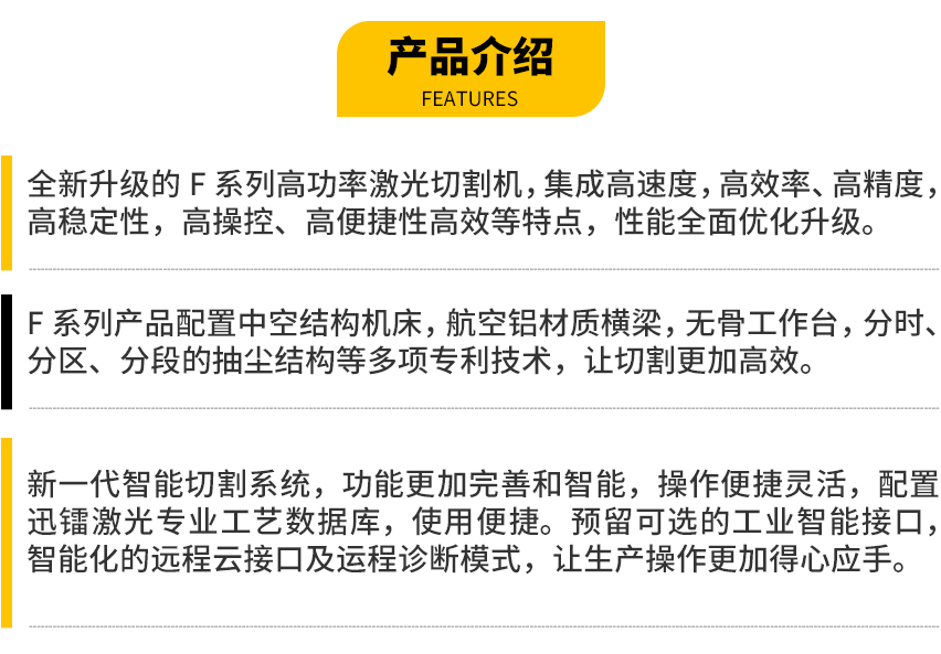 激光切割技術(shù)的逐漸普及,使其應(yīng)用領(lǐng)域得到不斷拓展和加深。市場對超厚板穩(wěn)定加工、無煙無塵、高效切割以及服務(wù)質(zhì)量提出了更高的要求。迅鐳激光繼往開來、永續(xù)創(chuàng)新,始終位于“高功率與智能化”激光切割技術(shù)領(lǐng)域制高點(diǎn)。第8代激光切割裝備擁有10大核心優(yōu)勢,助力客戶降本增效,樹行業(yè)高端典范。