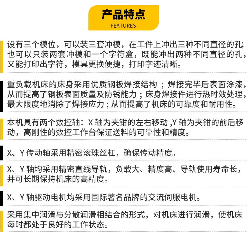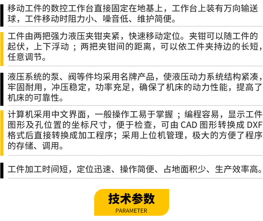 數(shù)控液壓平板沖孔機(jī),主要用于鋼結(jié)構(gòu)、電力和汽車等行業(yè)中小規(guī)格板材的沖孔,工件一次裝夾后可進(jìn)行沖孔加工,確保孔的位置精度,具有很高的工作效率和自動(dòng)化程度,尤其適用于多品種的加工。
